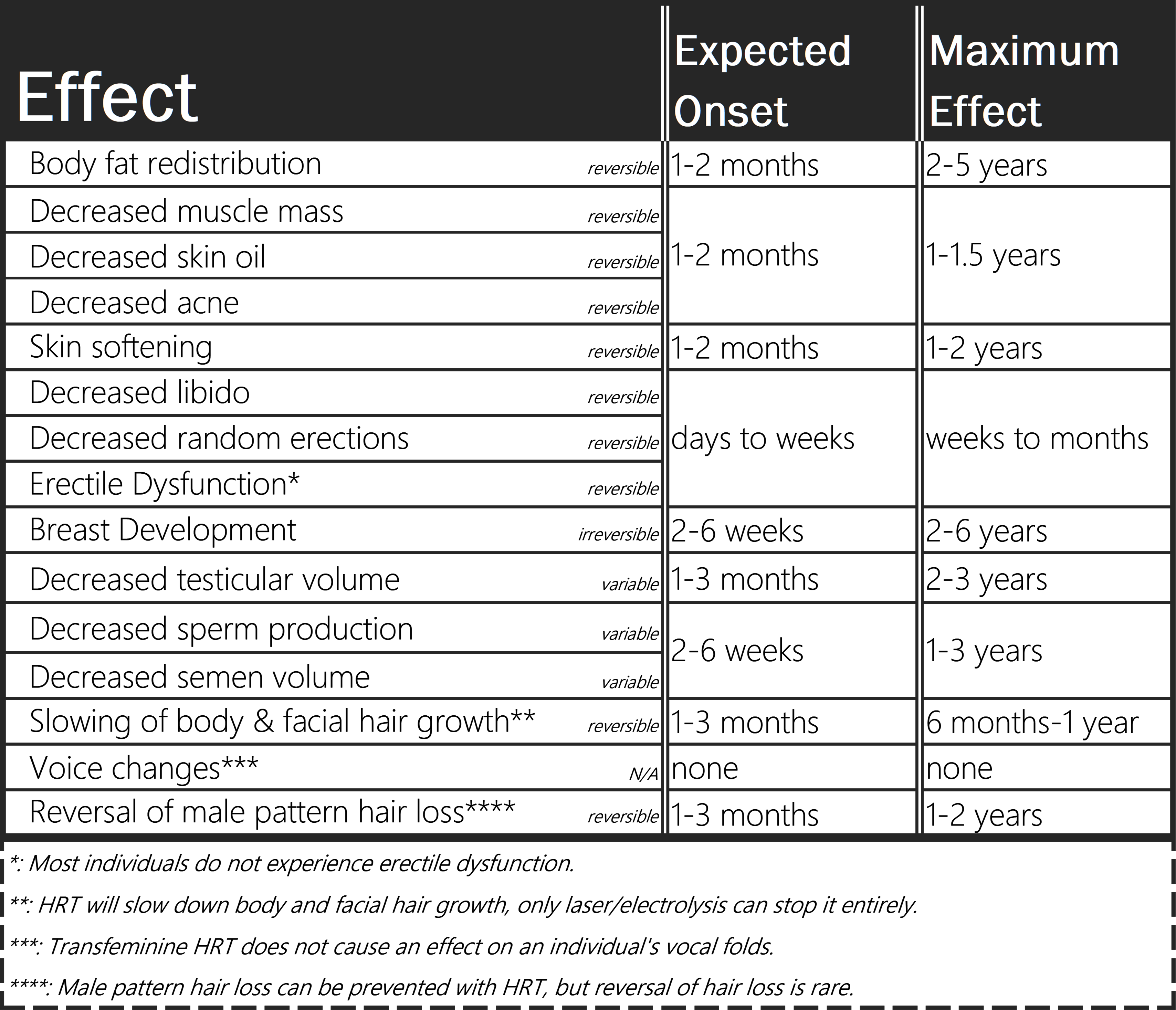 Keep in mind that all forms of HRT will likely make you infertile, possibly irreversibly. Consider sperm banking if this is a concern.